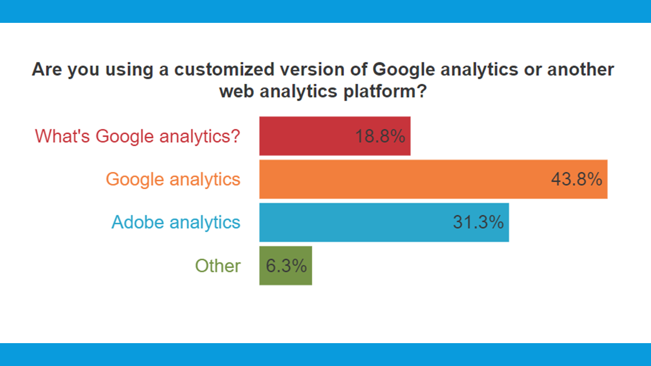 Χρησιμοποιώντας μια online ψηφοφορία κατά την διάρκεια του meetup συλλέξαμε πληροφορίες από τους συμμετέχοντες και την ενασχόληση τους με τα web analytics. Οι ερωτήσεις που απαντήθηκαν ήταν:
